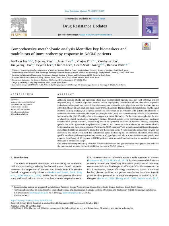 Authors : Se-Hoon Lee1, Sujeong Kim2, Jueun Lee3, Yunjae Kim2, Yanghyun Joo2, Jun-Yeong Heo4, Heeyeon Lee3, Charles Lee5, Geum-Sook Hwang6*, Hansoo Park7*