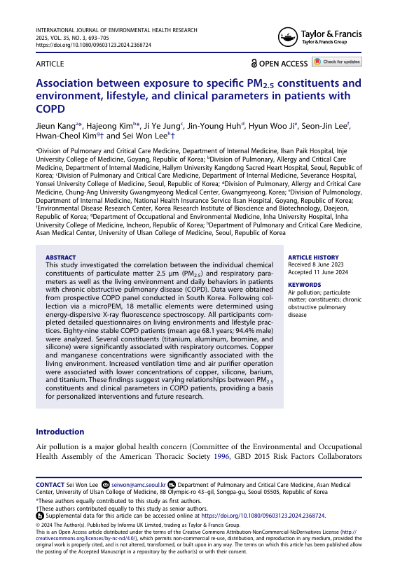 Title : Association between exposure to specific PM2.5 constituents and environment, lifestyle, and clinical parameters in patients with COPD