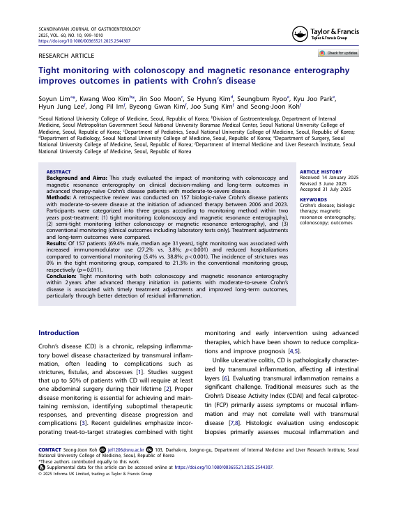 Title : Tight monitoring with colonoscopy and magnetic resonance enterography improves outcomes in patients with Crohn's disease