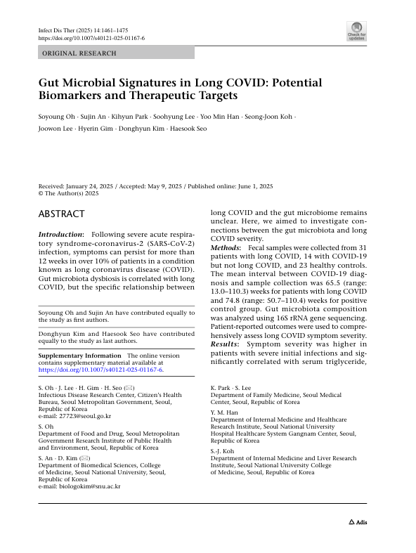 Authors : Soyoung Oh#1,2, Sujin An#3, Kihyun Park4, Soohyung Lee4, Yoo Min Han5, Seong-Joon Koh6, Joowon Lee1, Hyerin Gim1, Donghyun Kim#7,8,9*, Haesook Seo#10,11*