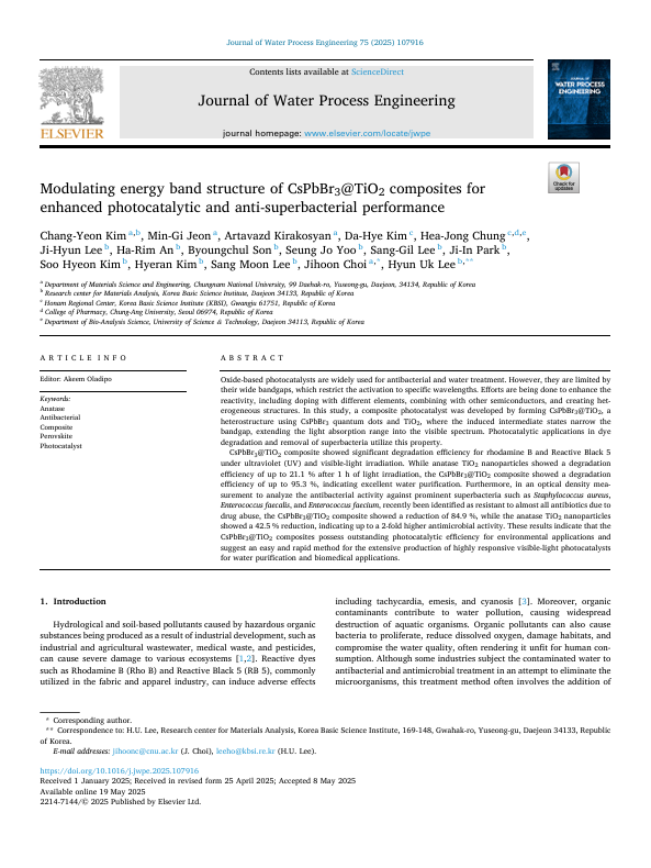 Authors : Chang-Yeon Kima,b, Min-Gi Jeona, Artavazd Kirakosyana, Da-Hye Kimc, Hea-Jong Chungc,d,e, Ji-Hyun Leeb, Ha-Rim Anb, Byoungchul Sonb, Seung Jo Yoob, Sang-Gil Leeb, Ji-In Parkb, Soo Hyeon Kimb, Hyeran Kimb, Sang Moon Leeb, Jihoon Choia*, Hyun Uk Leeb*