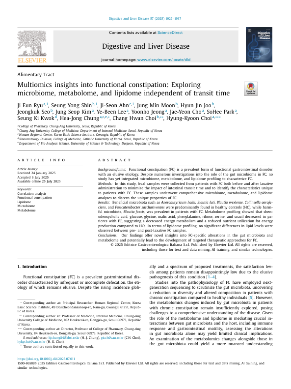 Title : Multiomics insights into functional constipation: Exploring microbiome, metabolome, and lipidome independent of transit time