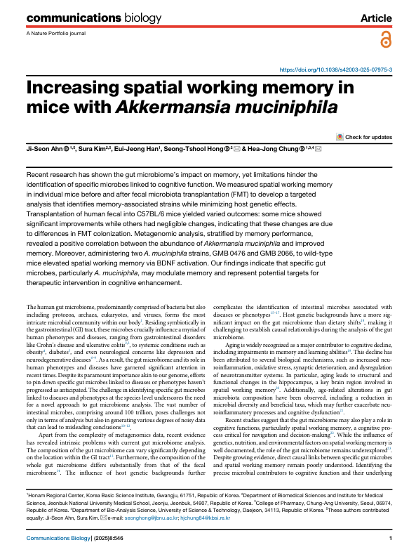 Title : Increasing spatial working memory in mice with Akkermansia muciniphila