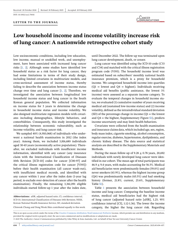 [생균제(이세원연구팀)-2025] Low household income and income volatility increase risk of lung cancer: A nationwide retrospective cohort study