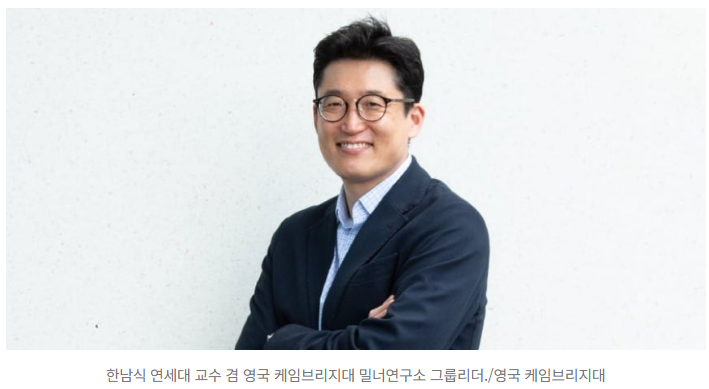 한남식 영국 케임브리지대 겸 연세대 교수는 세계적인 신약 개발의 대전환을 주도하는 연구자이다. 그는 영국 케임브리지대 밀너연구소에서 AI·계산생물학 연구그룹을 이끌며 AI와 양자컴퓨터를 접목한 신약개발 분야를 개척했다. 최근 연세대 융합과학기술원 및 양자정보학과 교수를 겸직하면서 연구 거점을 한국까지 확장했고, 영국과 한국을 잇는 공동 연구 생태계 구축에도 속도를 내고 있다.