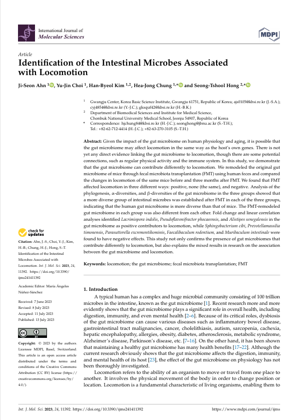 [면역(곽승기연구팀)-2023] Identification of the Intestinal Microbes Associated with Locomotion