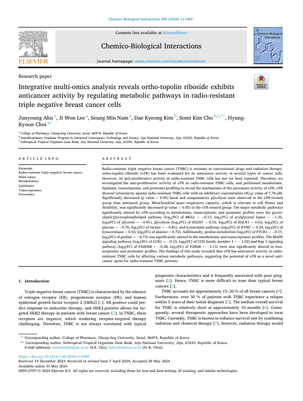 Title : Integrative multi-omics analysis reveals ortho-topolin riboside exhibits anticancer activity by regulating metabolic pathways in radio-resistant triple negative breast cancer cells